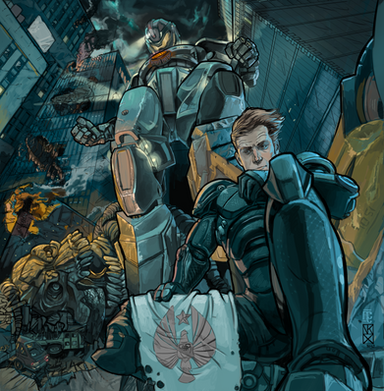 This looks like it could be the cover of a Pacific Rim manga book. Β I don't know if that's what you were shooting for, but I totally mean it as a compliment. Β Β Cherno looks appropriately epic, and I love seeing Aleksis and Sasha in this style. Β