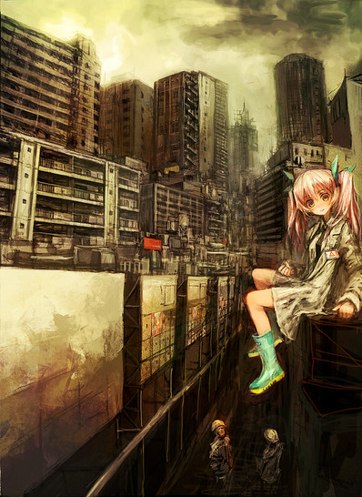 yeah, it's somewhat difficult to arrange the perspective & composition =w= so I added the moss, rust and the birds for the post-apocalypse or post-disaster flavor~ :3