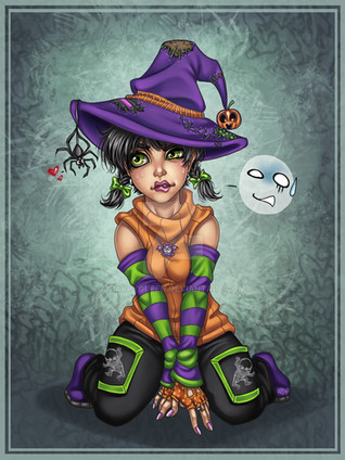 That's a pretty nice t-shirt that she's wearing, because I like the black and white stripes on her sleeves and the cute kitty cat on the front of the shirt. Her hairstyle came out really good and I like how well you drew the sitting pose on her as well.