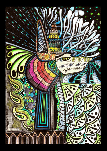 This is from a series of studies I made for an art course. We were supposed to be working with the theme of faces, but I was more interested in some of the ancient patterns I discovered and the next few pages in my sketchbook revolve around them. The original drawing is pencil on paper, but once scanned and darkened it brought out all the faint smudges and marks that the eye ignores.