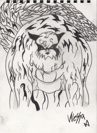 This came from a sketch that I did around a year ago. I've been working on this digital version here and there since May and after looking at all of the unfinished work in my files I said fuck it and colored it in.Related content