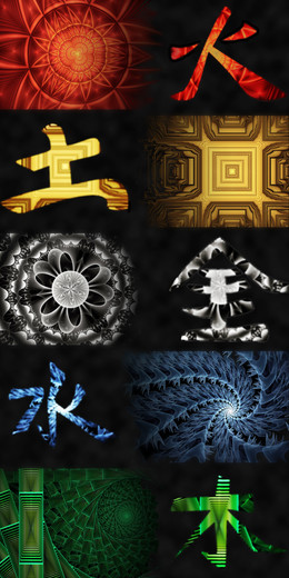 in Japanese , but 2 of them are with switched signs , earth and lightning