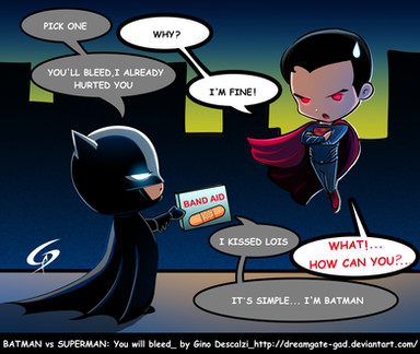 its like that with me and my Best Friend..She like Superman more and I like Batman more.--but yeah they're both our favs...i find it kinda weird..cuz i have a thing for Green Lantern too.