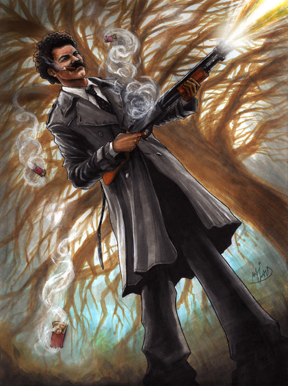 Lol he's just upset about having to pick up his other gun. I've got an updated version of this pic, which I'll upload soon. Let me know if you think the extra editing is worth it. I've re-editing old pieces a lot recently... Bloody laziness.