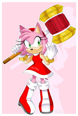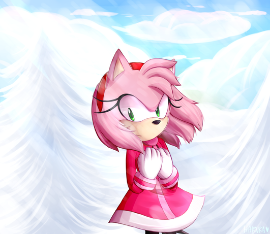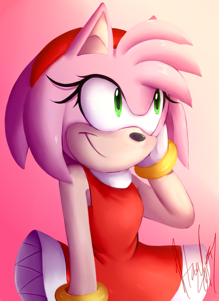 Why, look, this is exactly how Amy *should* look. I mean she is the female representative face of the franchise. The tonal balances in this artwork are perfect. However her nature, that of an infatuated, cute, female anthropomorphic hedgehog is captured here in perfect focus. This artwork shows exactly how Amy feels and how she really does in-character in the game.