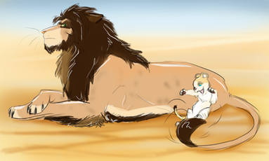 prev.:ΒNkosi felt strange about the loss of his girl. Not that he'd say he'd fallen in love with her, they didn't knew each other long enough for such strong feelings, but like all of his lionesses she was special for him and it hurt to see her like that. The blood drying on her dark pelt, the emotionless face, it simply hurt. He started to carefully clean her body from blood and dirt before he softly touched her head with his muzzle. Then he left her body to the vultures.