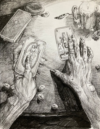 #crosshatching #dark #darkart #drawing #goldleaf #illustration #ink #line #macabre #macabreart #wicca #witchy #femaleartist #commissionsopen #art #spookyseason
