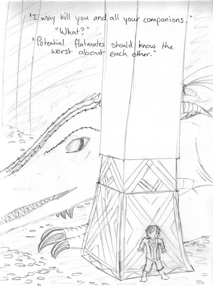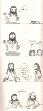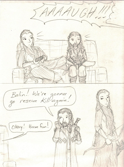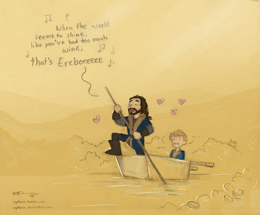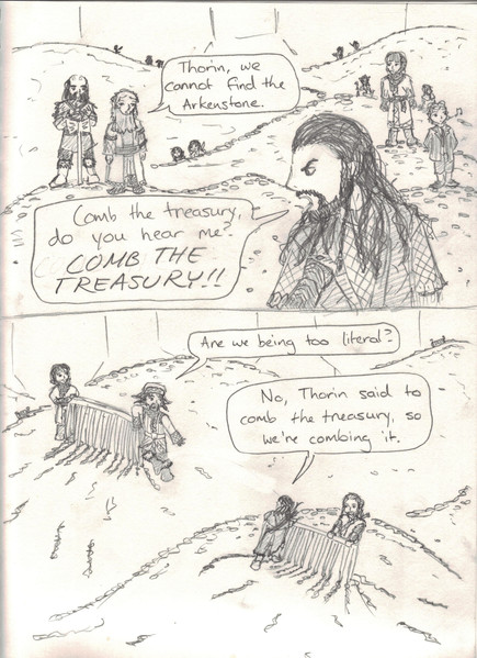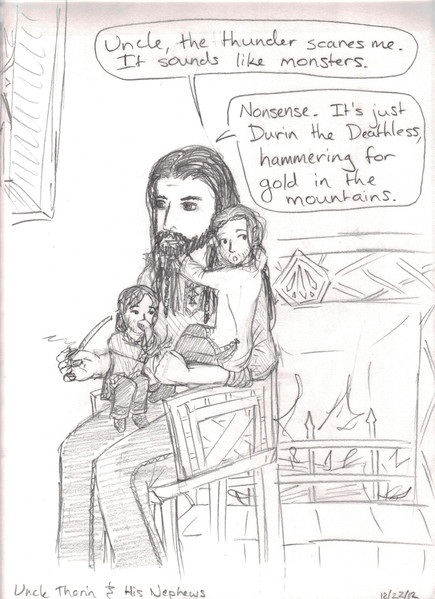 The internet disappointed me with their lack of "walk into Erebor" jokes. I mean, "one does not simply walk into Mordor" is one of the most-quoted lines from LotR! Where are the Hobbit spoofs/jokes?It was funnier in my head, I must admit. Mostly I just like to draw Thorin. He has basically become my favorite to draw. I honestly don't know why. It's the majesty, I guess.