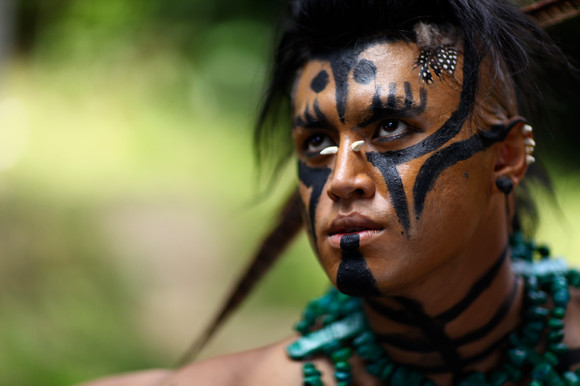 A Young man dressed in traditional Mayan warriors costume, Tulum, Mexico, 2004Related content