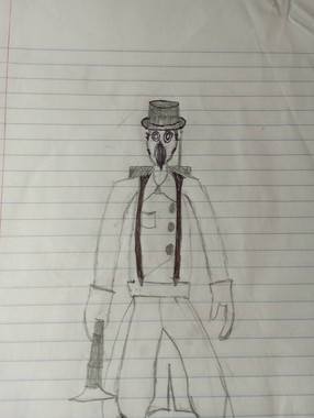 Among the streets, sunset’s rays illuminated a figure drenched in darkness, spreading threats of disease and plague. They wore a top hat over their blood red hair that was neither short or long, and gloves that smothered and carefully wove together the monster that incinerated the human race. Their fingers were long and thin, pointed at the tips like sewing needles. With still wind billowing their open jacket, tendrils only visible to divine eyes pulsated through the air.