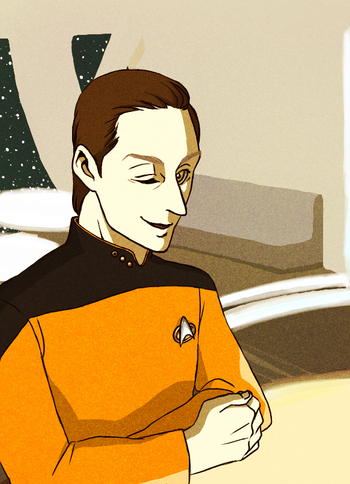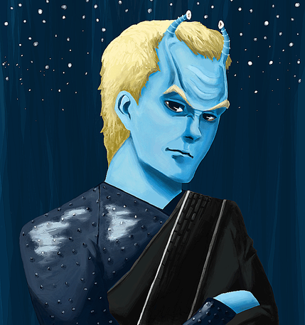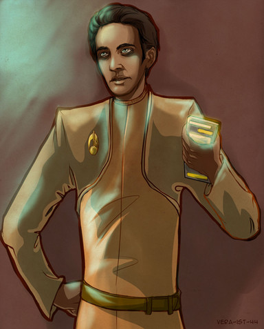 From Star Trek: DS9.I laughed hard when searching images on the internet because I saw someone said "If Odo's uniform is his own shapeshifting, how does his communicator work?".