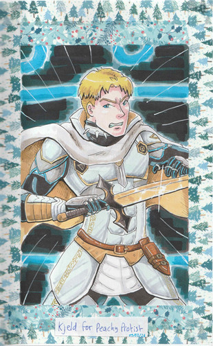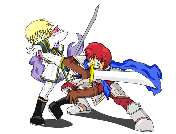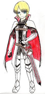 Now this guy... This guy was just an all around pain, but god damn was he worth it! Seriously, this guy looked WRETCHED on the paper I was drawing on; the face was off center, I couldn't get the shine on his armor and sword right at all, and his left arm's WAY too long! I think his right arm is too, but you can't really tell due to the fold. But then I scanned him in and it worked out okay! His arm's still too long, but hey! So anyway, here's Rowan, the ideal protagonist for Project A unless otherwise decided.I know the cuffs, folds and center of his coat is the same color as his skin; I was trying to go for the light beige look but this is all i could really muster. And you may notice a few splotches in his colors, I didn't realize that it was picking up the blue that went right through onto the surface I was drawing. Cleaned up the mess, I promise! D:
