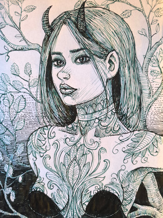#dark #dragon #dragonkin #fantasy #female #inkdrawing