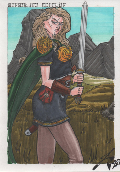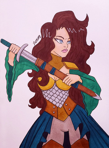 #fantasycharacter #fantasyillustration #inkdrawing #landscape #warriorwoman #lakereflection