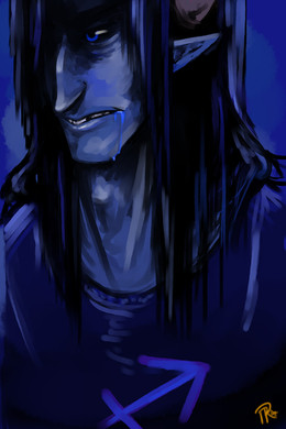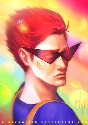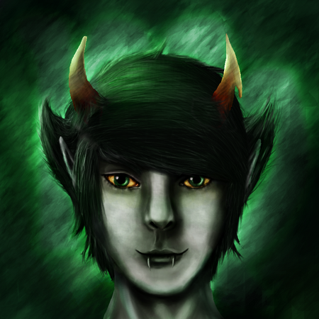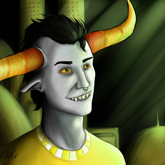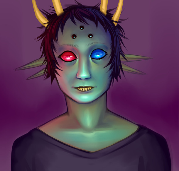 God this is so beautiful though. It is so, so beautiful. Itβs soft and subtle and you just keep looking at it for hours even though itβs a βboring face shotβ. I canβt believe you hate drawing, that you can just whip this out LOL NO BIGGIE. Itβs just so gorgeous. The gradient of his glasses and his chipped tooth and the blue glow around him. I love his horns, Iβve never seen them done like that; like the exoskeleton of a bug. And just- the whole thing. You especially hate using color but it works so well here. Something about it just keeps you looking. Itβs gorgeous.