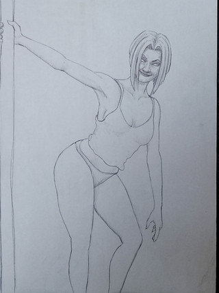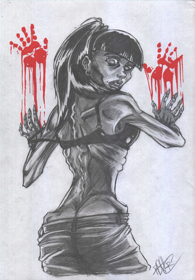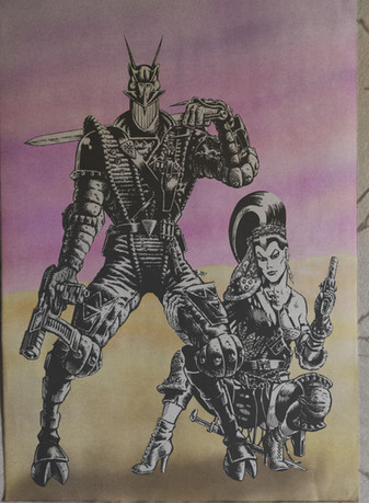 Or is it #4? I forgot lol- My version of the comic book babe!Spray paint over Bic pen sketch. Brush pens for shading,Posca pens for highlights a detailΒ
