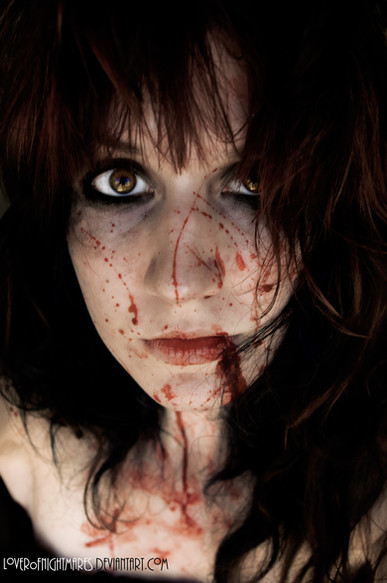 Your deviation is deviously devastating in the dubious world of demonic desserts! AKA- I liiiike it! Like a few have said- the teeth make her look more like a bunny-vampy. ^.^ Perhaps you could add a little more detail to the teeth? Almost looks like she was eating paper, then got caught and half-killed. ^.^ more detail and a repositioning of the teeth- and you have one king of deviousness of artlihood.