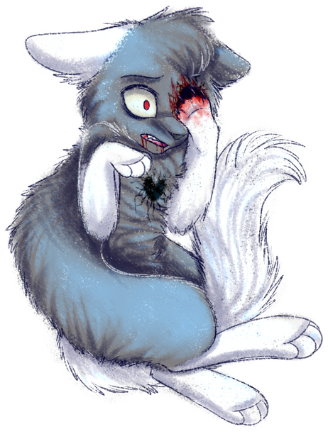 Quick was originally a Deepwoods cat, though now he lives with his family in Green Forest. He had a brief rebellious stint and left the clowders to survive on his own, which went very poorly. He ended up becoming a target to a much larger, stronger cat who caught him by his leg as he ran away and tore it up pretty violently. It ended up severely damaging the muscles and nerves in his leg, and because he didn't have the ability or desire to seek any medical attention his leg effectively died, but when he had to give up his pride and return to the clowders it was too late to save it. He drug his dead leg around for a while, but eventually it was becoming infected and all-around disgusting, so it had to be removed forcefully least it became a health hazard to him and those around him.Β