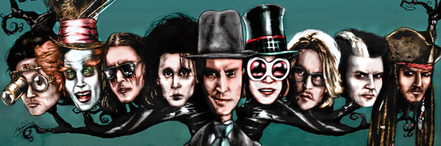 Alice in wonderland, fear and loathing in Las Vegas, ed wood, corpse bride, ringo, sleepy hollow,Edward Scissorhands, pirates of the Caribbean. charlie in the chocolate factory, Sweeney Todd, The Imaginarium of Doctor Parnassus, cry baby.