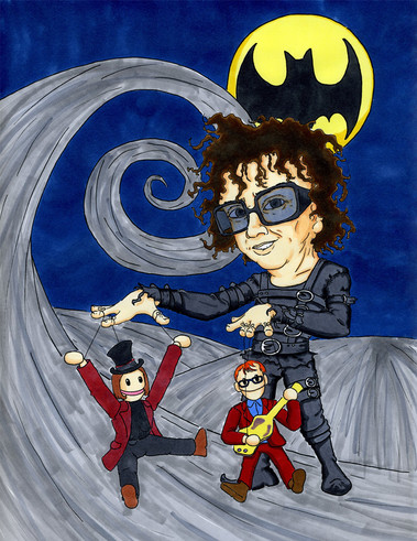 nightmare before Christmas, Vincent, Beetlejuice, Batman, Batman Returns, Batman Forever, Edward Scissorhands, Charlie and the Chocolate Factory, Corpse Bride, Sweeney Todd: The Demon Barber of Fleet Street,9 & Alice in Wonderland