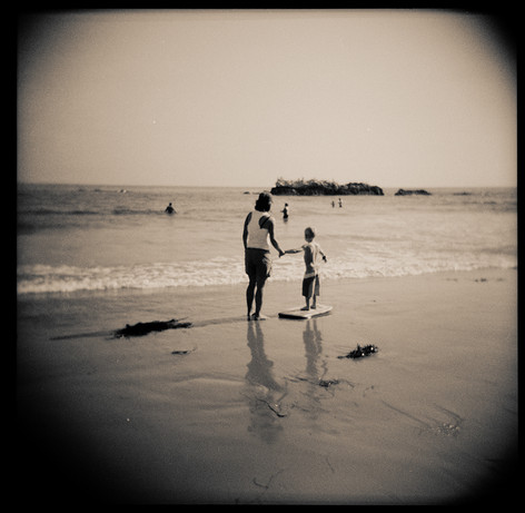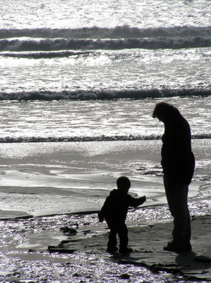 Like it. I like the way the pylons lead you out the picture but the horizon leads you back into the child, then off you go again. Love the contrast between the blue background and that dash of red on the child. Clone out what looks like a head in the lower right corner.