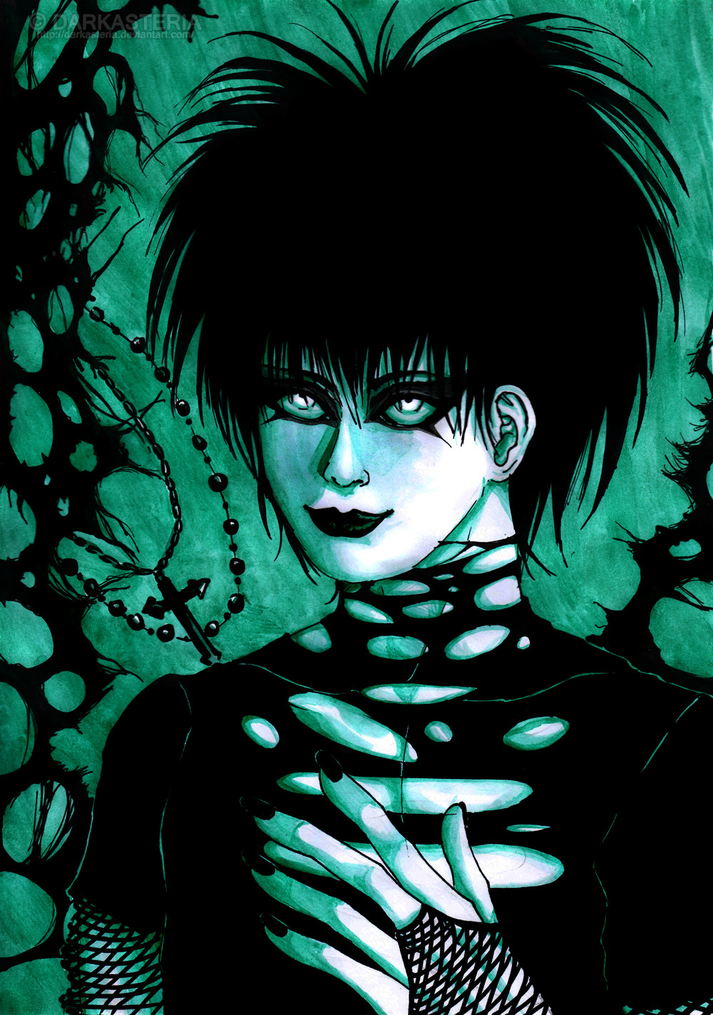 #cross #dark #darkart #edgy #goth #gothic #green #male #man #pale #red #digitaldrawing #digitalpainting #originalcharacter #portrait #rippedclothes #edgycharacter