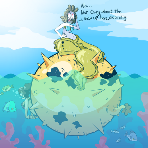 I figured it was about time to make some actual reference sheets for the important mermaids, to sort of nail down the feel of the characters. Is this the first time we've seen Poppy topless? I can't recall. Anyway, adjusted her inflated shape a bit to make it flow better with her design.Related content