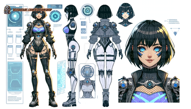 #anime #robot #cyborg #hatsunemiku #vocaloid #digitalart #fanart #characterdesign #animegirl #scifi #cyberpunk #adoptable #mecha