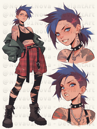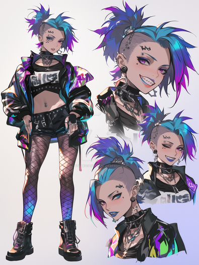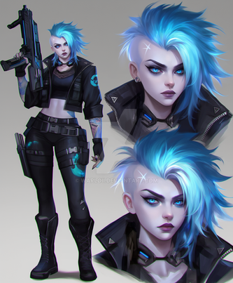 #digitalart #fanart #characterdesign #conceptart #characterconcept #videogamefanart #adoptablesopen #cyberpunk #referencesheet #leagueoflegends #adoptable #jinx #league_of_legends