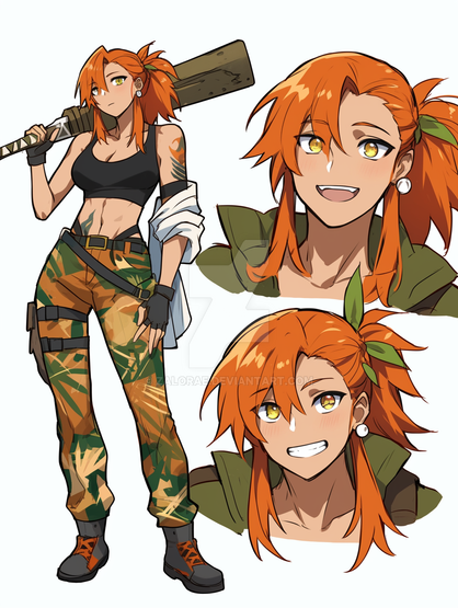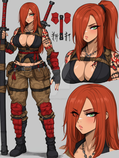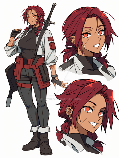 #anime #characterdesign #animegirl #originalcharacter #warrior #characterconcept #animedrawing #digitalart #conceptart #fanart #pixelart #adoptablesopen #referencesheet #redhair #badass