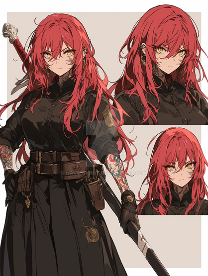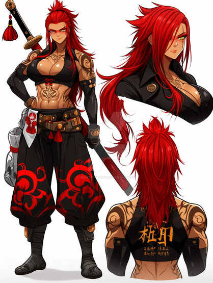 #anime #characterdesign #adoptable #originalcharacter #warrior #adoptablesopen #animedrawing #digitalart #animegirl #characterconcept #adoptableauction #redhair #fantasycharacter #referencesheet #badass