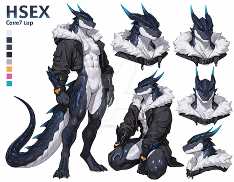 #characterdesign #adoptable #adoptablesopen #adoptableauction #sale #characterconcept #cyberpunk #referencesheet #digitalart #humanoid #clothing #originalcharacter #dragon