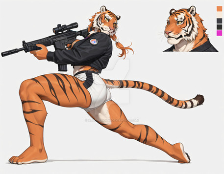 #characterdesign #adoptable #adoptablesopen #adoptableauction #tiger #digitalart #characterconcept #referencesheet #originalcharacter #warrior #cat #cyberpunk #humanoid
