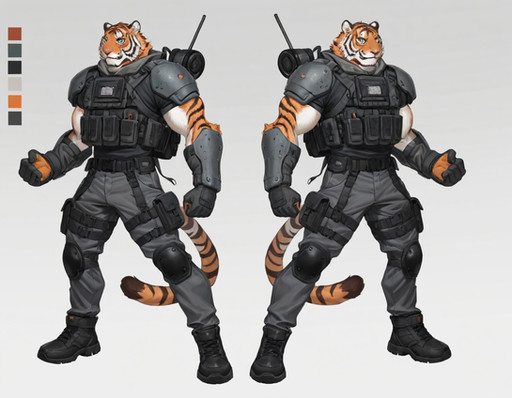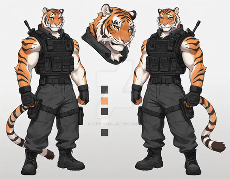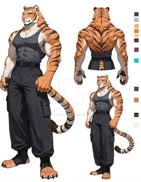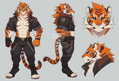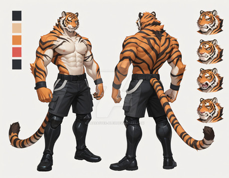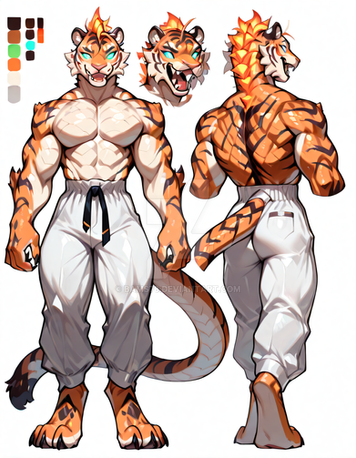#characterdesign #adoptable #adoptablesopen #adoptableauction #referencesheet #tiger #characterconcept #digitalart #originalcharacter #warrior #sale #fighter #feline #clothing