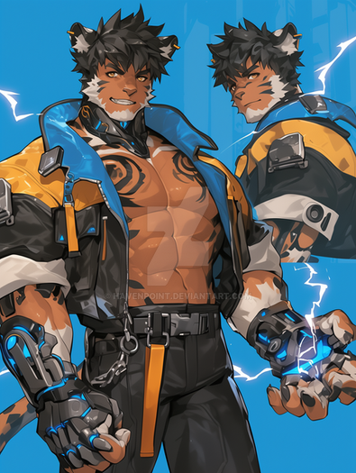 #characterdesign #characterconcept #tiger #digitalart #warrior #cyberpunk #referencesheet #originalcharacter #abyss #lightningrod