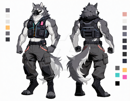 #characterdesign #referencesheet #digitalart #characterconcept #originalcharacter #cyberpunk #clothing #abyss #furryanthro #lightningrod #furrycharacter