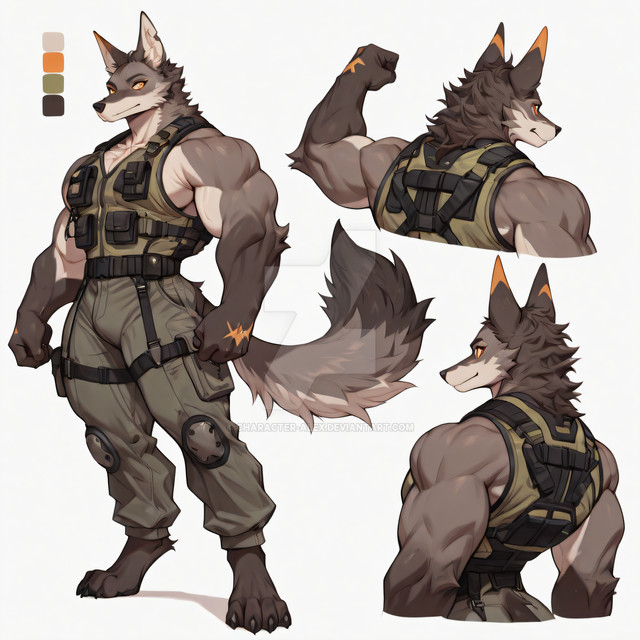 #characterdesign #adoptable #digitalart #characterconcept #originalcharacter #referencesheet #military #furrymale #backwards #croissant