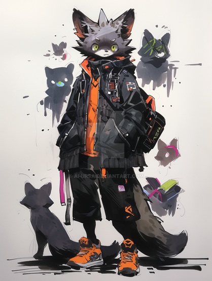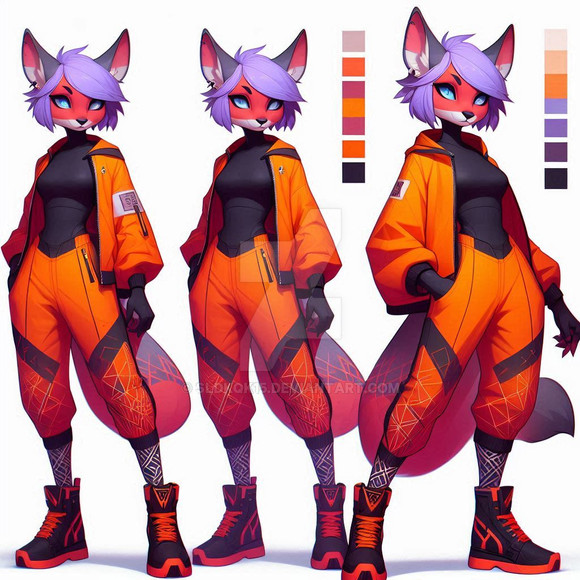 #characterdesign #fox #digitalart #conceptart #characterconcept #cyberpunk #originalcharacter #scifi #referencesheet #forestgreen #humble
