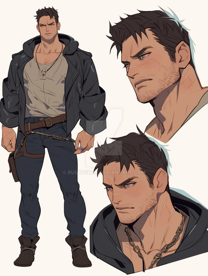 #characterdesign #adoptable #adoptablesopen #characterconcept #malecharacter #digitalart #portrait #originalcharacter #warrior #fantasycharacter #referencesheet #bartender #dusk
