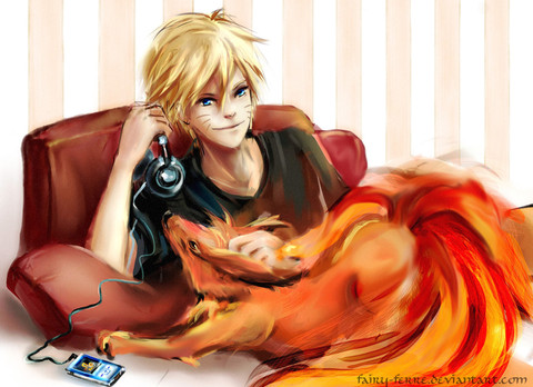naruto looks so focused on his game. i wonder what he's playing...