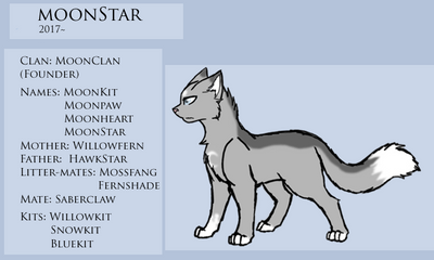 Names: Moonkit, Moonpaw, Moondusk, MoonstarGender: She-Cat
