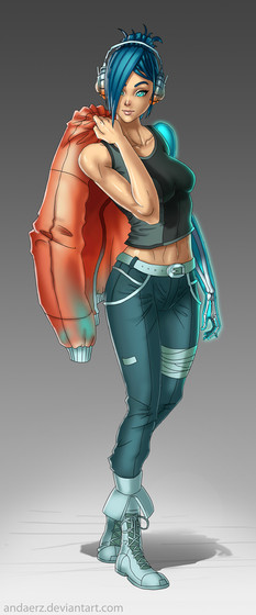BTW... This is an awsome piece. I love how you've incorporated the power button in as her 'tattoo'.