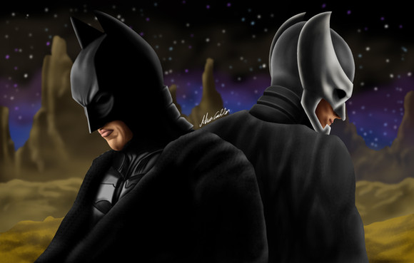 Other than(as some have mentioned) Terry's cowl ears being long as swords(maybe he uses them as improvised shivs Hell I don't know) It is overall a pretty kick ass picture. Batman's got the look of..."Don't touch me."