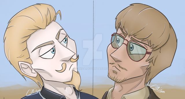 I've had this idea in my head for like a month. Finally got around to drawing it. Yay. I wanted to see how long I could take a break. About a week, not bad. Probably going to take another one. I've been reading books, very good stuff. Right now I'm on the HP Lovecraft complete collection. I guess that made me think of this again. Lol. Anyway, Joe and Dan switched bodies. Wow, such an original idea! This also gave me a chance to draw Erika again, it's been a while since I've drawn her. Next time, more women! I've drawn enough men for the entirety of my lifespan, I think... probably a new character, too.Joe: Erika, are you any closer to finding a cure for this?