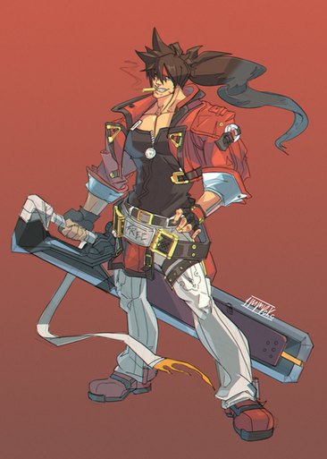 Guilty Gear might not have a coherent story but MAN are those designs epic. I played Rev2 quite a bit yesterday and was inspired to draw Sol yet again. Man, is he cool! The coolest version of him is the Overture one, though, so that's what I drew. I like the fashion, it's perfect for a jrpg. And there isn't a quintillion belts everywhere, that's nice too. Seriously though, what's with the belts?! Why does he have them on his quads??! Are they spare belts or do they there to contain the sheer power of his legs? There's a reason why Wall Kick is one of the best moves... I definitely prefer this design though, both for the clothes and the sword. The one in Rev2 is distracting. All I can think is, "WTH is this dude's exercise regimen?!" With this one his coolness is more prominent than his physical appearance. Skinny Sol gang gang, bros. Fashion>Booba. I'm probably the only person in the world with this opinion.