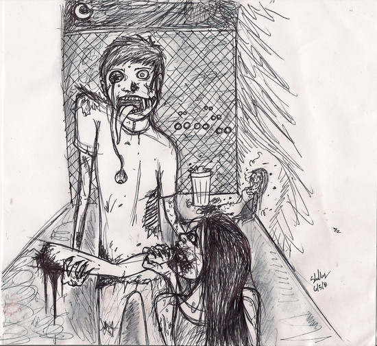 I feel really great! You know how it feels to have a big weight off your back after a long time? A-ma-zing. My sense of logic has finally won out over emotions. I realized that no matter what happens to someone else, it literally won't effect my life at all. Make bad decisions? Not my problem. Get diseases with no cure? Not my problem. Burn all your professional bridges? Not my problem. Screw up your brain chemistry? Not my problem. I'll wake up the next day exactly the same, cause it happened to someone else, not me. So why even worry about a thing with no name, no face, and no self respect? It's got nothing to do with me. And that's great, cause I want nothing to do with it, either. I want NOTHING to do with that sort of thing, EVER. Never ever ever ever ever. I don't want to see it, I don't want to be associated with it, I want nothing to do with it. I tolerated it for a long, long time. But really, it's not for me, and that's okay. Not everything has to be. Tons of other people like it, so. Good for them.There's nothing more annoying than someone who won't commit. Starts dieting, but stops a week later. Quits cigs, and has a smoke when nobody's watching. Don't bother quitting in the first place, then. Just go do what you want. If it feels good, then who cares? So yeah, I drew this. It's been a while since I've drawn Scott. Those are vampires btw, like usual. Pls no bully DA mods.