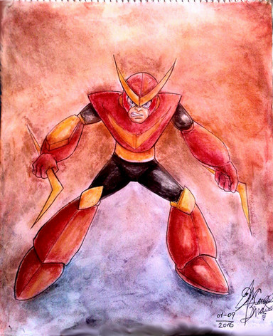 "Even one second is too much for me to waste!"It's Quick Man, from Megaman 2. He's one of my favorites from the series, since he's really fast. I approve of that rhetoric! Imagine wasting time doing something unproductive. I haven't played much of the games (I can't even beat Cut Man, lol) but I watched my older brother play through most of them. His level is really cool to me, so I wanted to draw it.