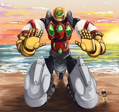 So yeah, I decided to draw him because look at that design! So cool! But it was certainly challenging for me. His face in particular took me a while to do, I think because I'm trying to make my art more three dimensional. I had to refine it quite a few times, but it finally turned out ok. I also finally managed to draw a picture from a bottom up perspective! (I think this is anyway.) Basically I tried out a lot of new stuff for this one. I like how it turned out, less painterly and more renderlike, which is what I'm aiming for. Still gotta work more on realism though.