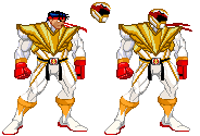 BLASPHEMY!!! Ryu NEVER wears any footwear! Haha, who knows, there might be a hole down there the size of his feet. Hahaha!