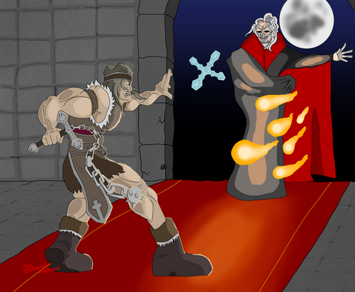 I just noticed that this is my 200th devitation. Nice.Art trade with who wanted me to draw Simon Belmont fighting Death from the Seventh Seal. I've never played Castlevania but I think Simon's pretty cool. I took this opportunity to practice drawing in perspective. If you can tell me what kind it is, I'll feature your comment!Β Β